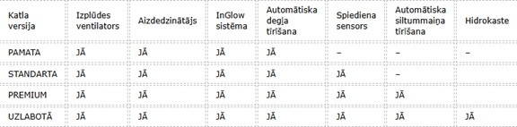 Aprīkojuma versijas: