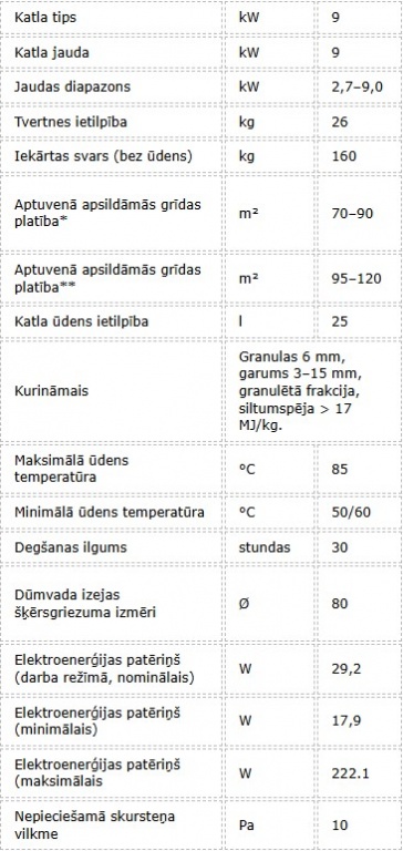 Paredzēts granulu dedzināšanai, tas ir aprīkots ar granulu degli un divkāršu pašattīrīšanās sistēmu , kas nodrošina augstu efektivitāti un gandrīz bezapkopes darbību.